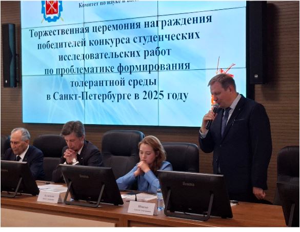 3 октября в торжественной обстановке состоялось награждение победителей конкурса студенческих исследовательских работ по проблематике формирования толерантной среды в Санкт-Петербурге в 2025 году. Конкурс проводился Комитетом по науке и высшей школе по четырем номинациям: психология, социология, культурологи, педагогика, среди студентов, обучающиеся в образовательных организациях высшего образования, расположенных на территории Санкт-Петербурга.