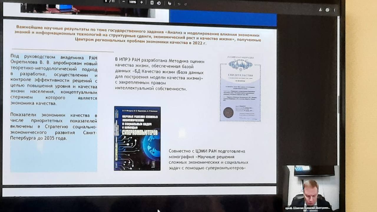 Название доклада, представленного А.Д. Шматко: «Результаты исследования ИПРЭ РАН в области кадрового обеспечения научно-технологического развития в Северо-Западном федеральном округе РФ». В рамках своего выступления Алексей Дмитриевич изложил результаты исследований, реализуемых научными структурными подразделениями Института под руководством научного руководителя ИПРЭ РАН, д.э.н., профессора, академика РАН Окрепилова В.В. в соответствии с решениями Ученого Совета ИПРЭ РАН, подробно рассказал о результатах сотрудничества ИПРЭ РАН и РИЭПП (Соглашение о научном сотрудничестве от 18 апреля 2024 года), к числу которых относится: проведение совместных мероприятий; реализация программ дополнительного профессионального образования; получение свидетельства государственной регистрации базы данных «Человеческий капитал: формирование, мобильность, творческая реализация в условиях нестабильности».