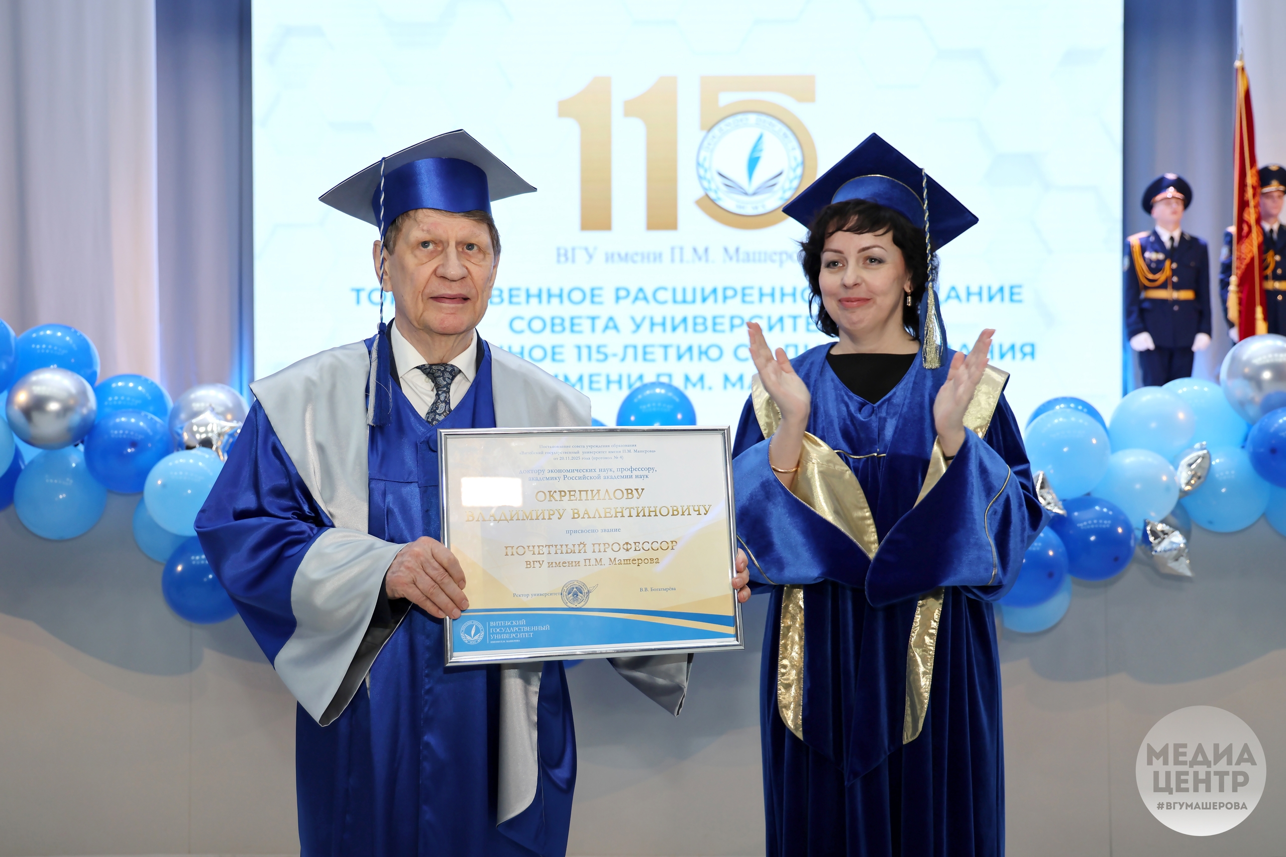 Звание «Почетный профессор Витебского государственного университета имени П.М. Машерова» присвоено выдающемуся российскому академику Владимиру Валентиновичу Окрепилову. Владимиру Валентиновичу были вручены почетная мантия, конфедератка и свидетельство о присвоении звания.