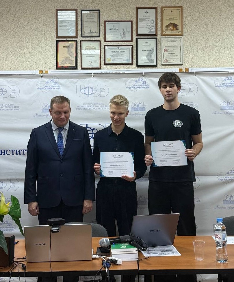 Прошло награждение и были заслушаны доклады победителей - обладателей дипломов I степени. Дипломы победителям были вручены директором ИПРЭ РАН, чл.-кор. РАО, д.э.н., проф. Алексеем Дмитриевичем Шматко.