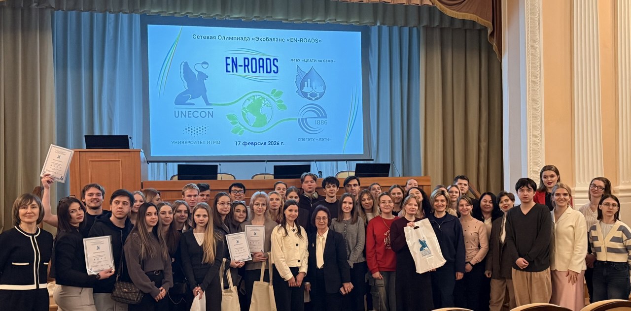 17 февраля 2026 года состоялся финал IV Межвузовской сетевой олимпиады «ЭКОБАЛАНС EN-ROADS». Цель Олимпиады состоит в содействии развитию Национальной системы квалификаций, подготовке профессионалов нового типа, востребованных на рынке труда, развитию талантливых студентов, способных решать сложные междисциплинарные задачи. Олимпиада проводится ежегодно на протяжении четырех лет сотрудниками факультета экономики, финансов и информационных технологий Санкт-Петербургского государственного экономического университета (СПбГЭУ). Финал Олимпиады проходил в очном формате в главном корпусе СПбГЭУ, собрав 10 команд – финалистов первого отборочного этапа, включающих помимо студентов СПбГЭУ ребят из НИУ ИТМО, СПбПУ, СПбГАСУ, СПбГЛТУ.