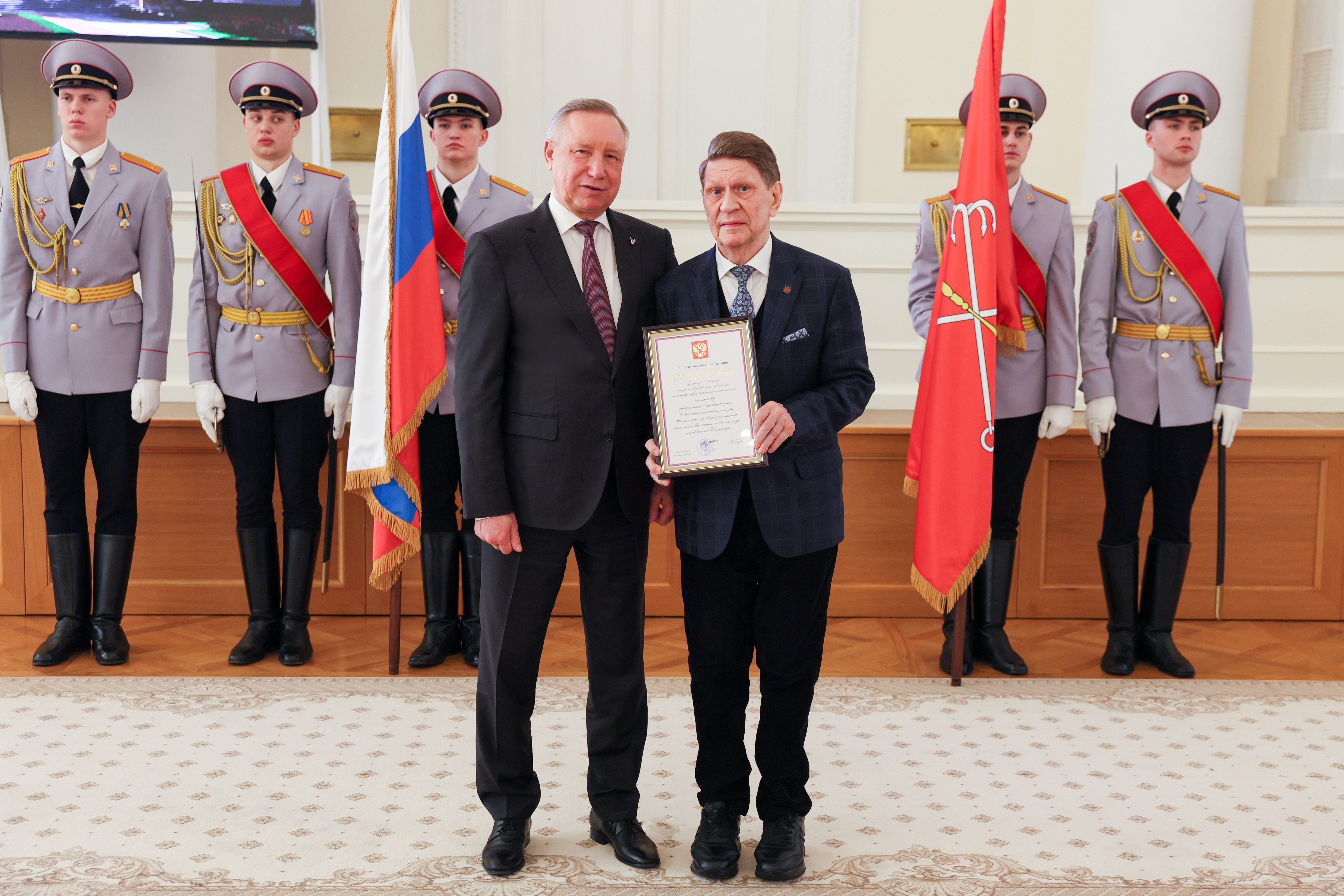 «Наш город всегда славился экономическими результатами, и в этом во многом работа наших вузов, наших академических институтов, которые многое сделали. Город по показателям промышленности, науки, культуры, образования сегодня занимает ведущие места в стране. Мы сегодня в Стратегии Петербурга выделяем главную задачу – повышение качества жизни наших граждан. Это огромная работа всех собравшихся в этом зале, всех тружеников и, конечно, огромная работа Правительства города и лично Александра Дмитриевича Беглова», – отметил в ответном слове Владимир Валентинович Окрепилов.