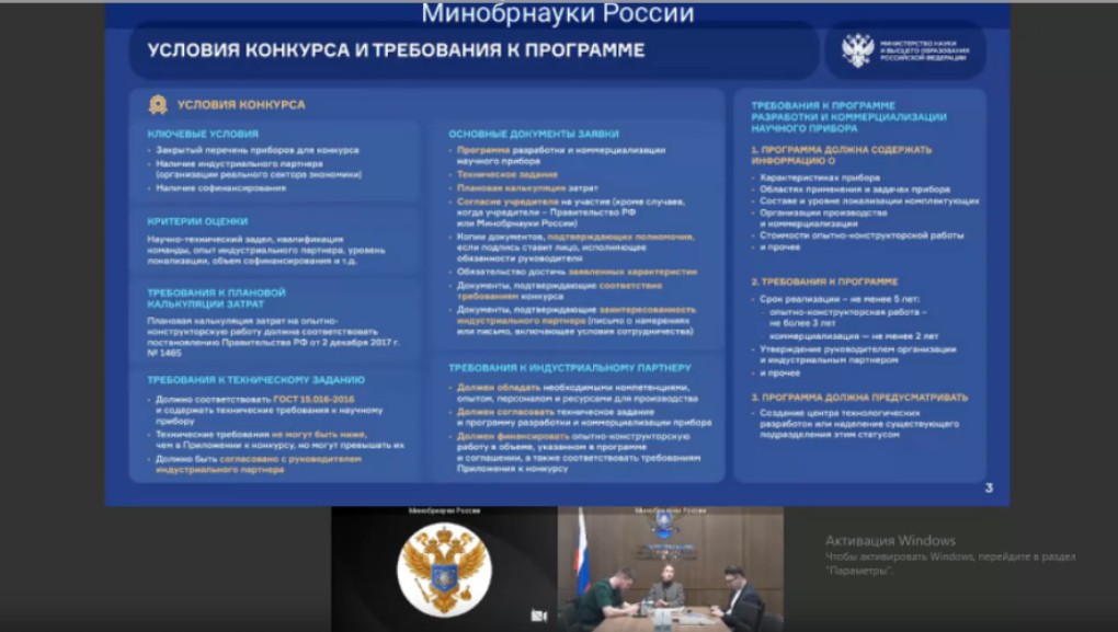 Заведующий лабораторией математического моделирования функционально-пространственного развития городов, к.т.н. Лосин Леонид Андреевич и ученый секретарь, ст.н.с. лаборатории комплексного исследования пространственного развития регионов, к.э.н. Назарова Е.А. приняли участие в вебинаре по общим вопросам, возникающим у организаций при подготовке заявок на участие в конкурсе для определения в 2026 году получателей субсидий из федерального бюджета на проведение научно-исследовательских и опытно-конструкторских работ по разработке отечественного приборостроения гражданского назначения, который был проведен Департаментом стратегического развития Министерства науки и высшего образования Российской Федерации 24 марта 2026 г. На вебинаре были освещены общие вопросы по подготовке заявок, условиям конкурса, необходимых документах и особенностях привлечения индустриальных партнеров.
