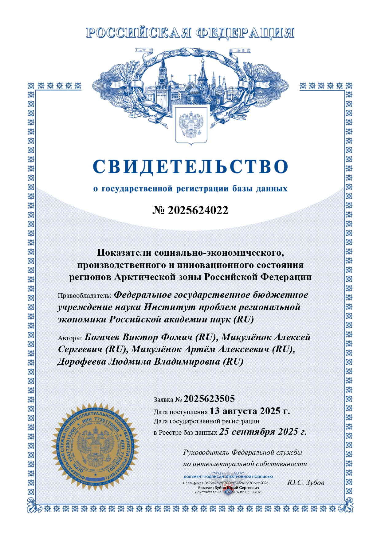 безопасности на период до 2035 года» в рамках реализации дорожных карт арктических регионов. Комплексный подход при проведении системной диагностики позволяет обеспечить качественное управление ресурсами в процессе хозяйственной деятельности на межрегиональном уровне и сформировать рейтинг регионов АЗРФ
